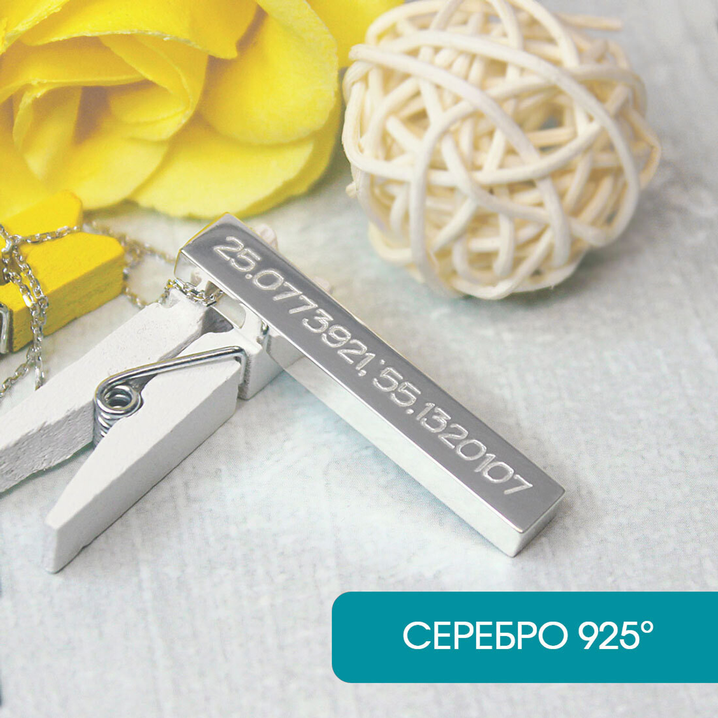 Серебряный 925° вертикальный кулон Брусок ручной работы.