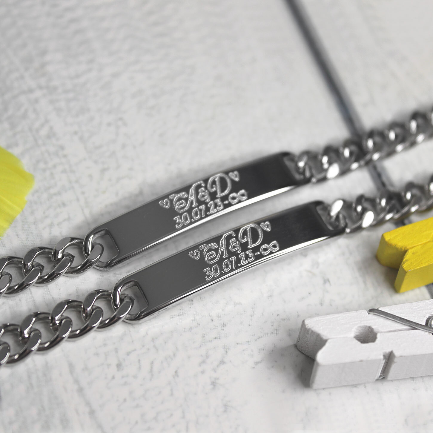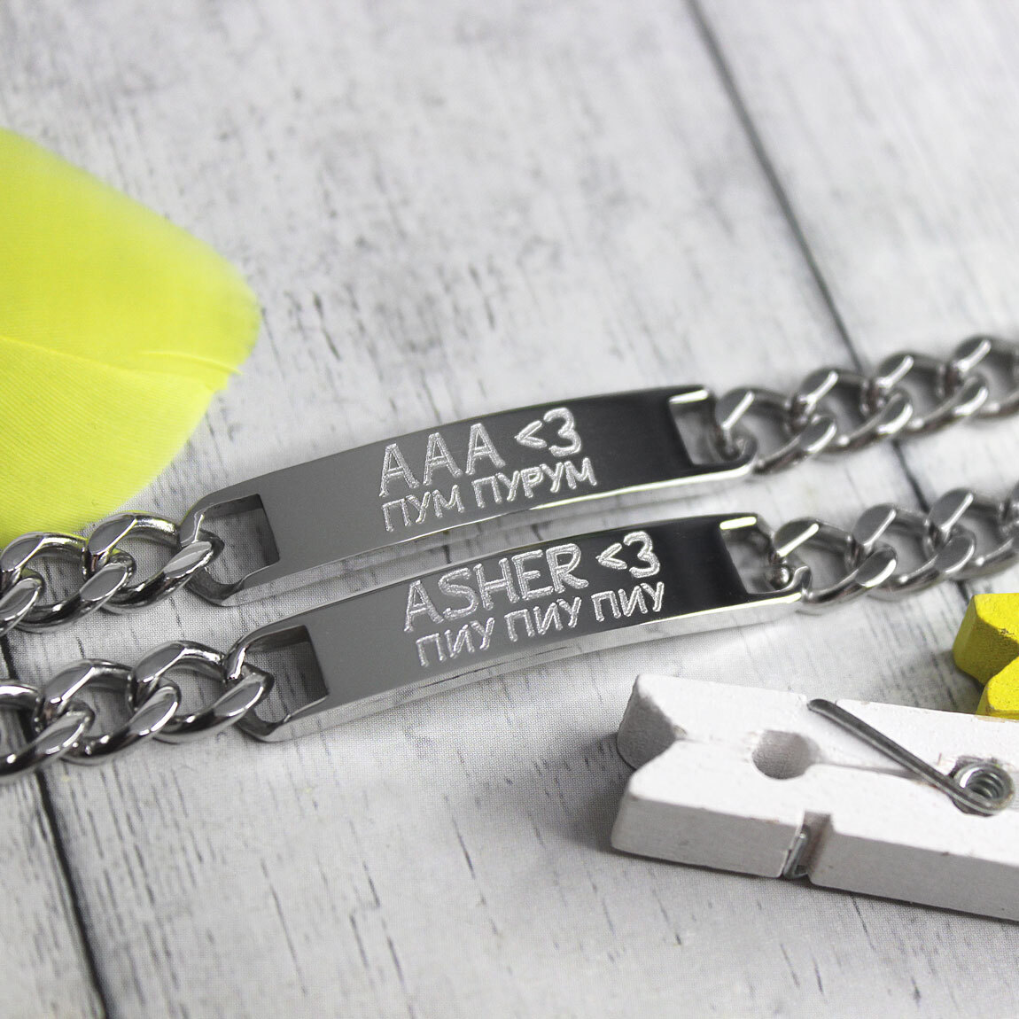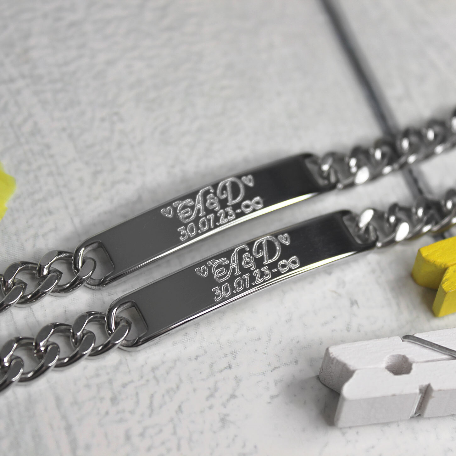 Стильные и весьма изящные парные браслеты из титана с вашей личной гравировкой на заказ станут прекрасным и романтичным подарком на вашу годовщину, день влюбленных или просто чтобы порадовать любимого человека ;)