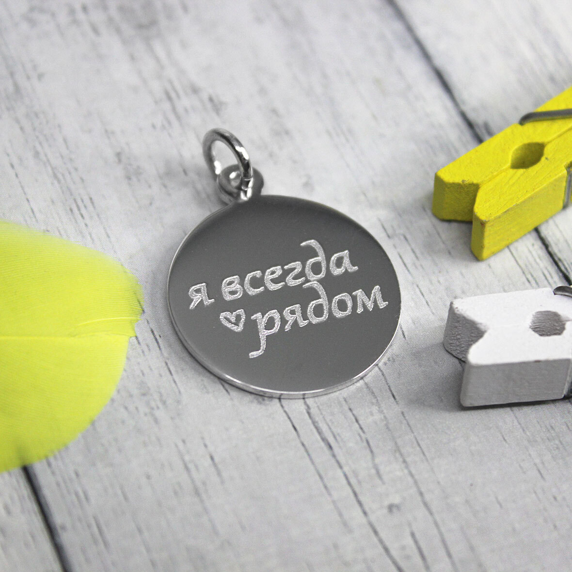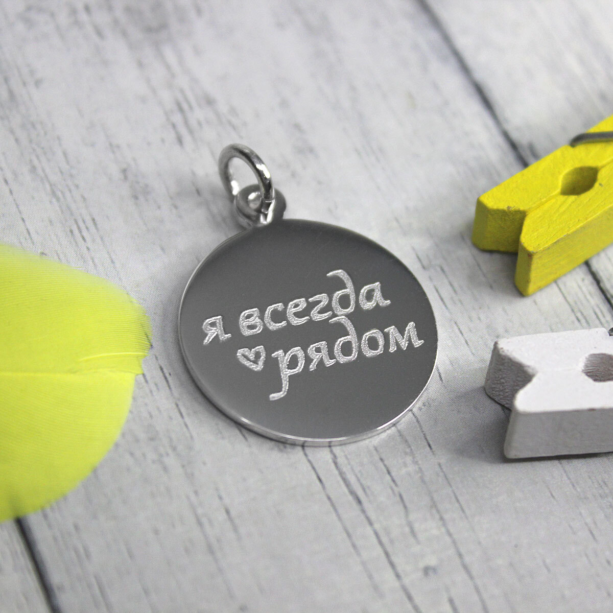 Аккуратный круглый кулон из серебра 925° ручной работы с гравировкой на заказ.