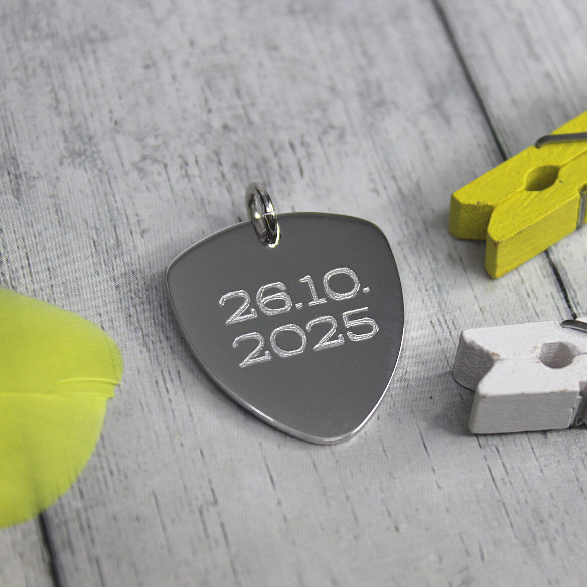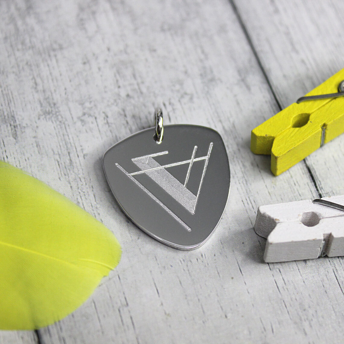 Стильная подвеска-медиатор из серебра 925° ручной работы с гравировкой на заказ.