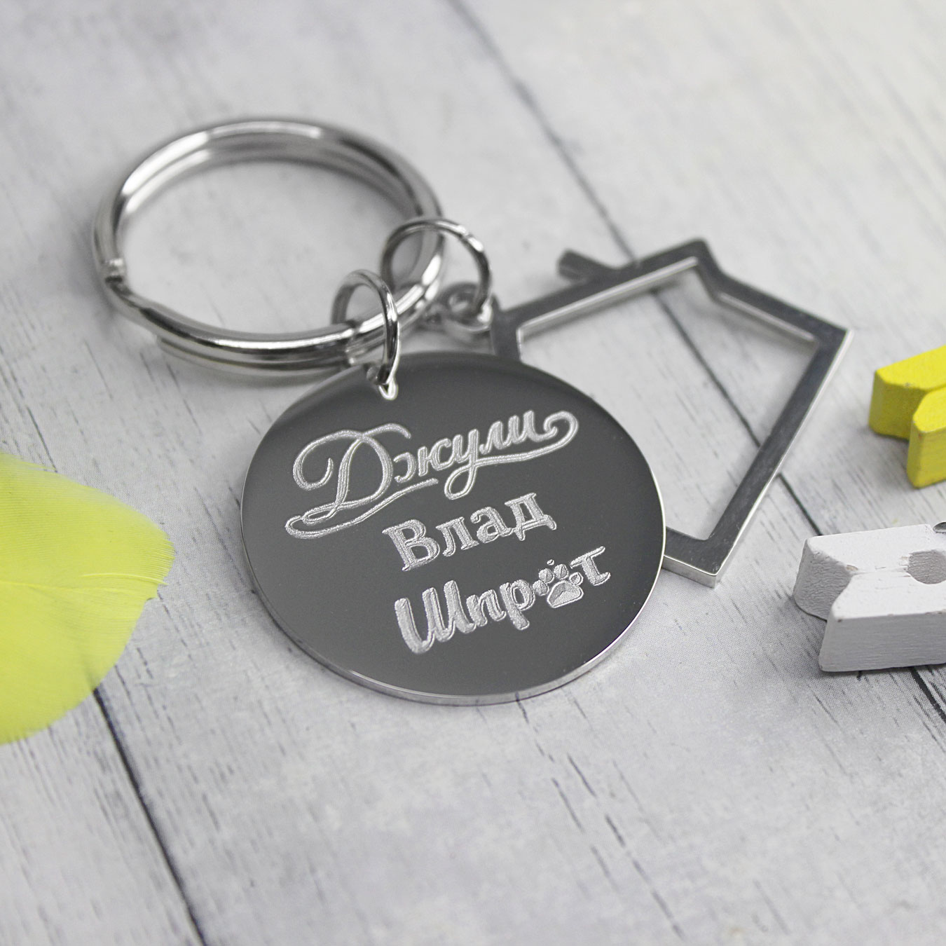 Круглый жетон, домик, кольцо для ключей