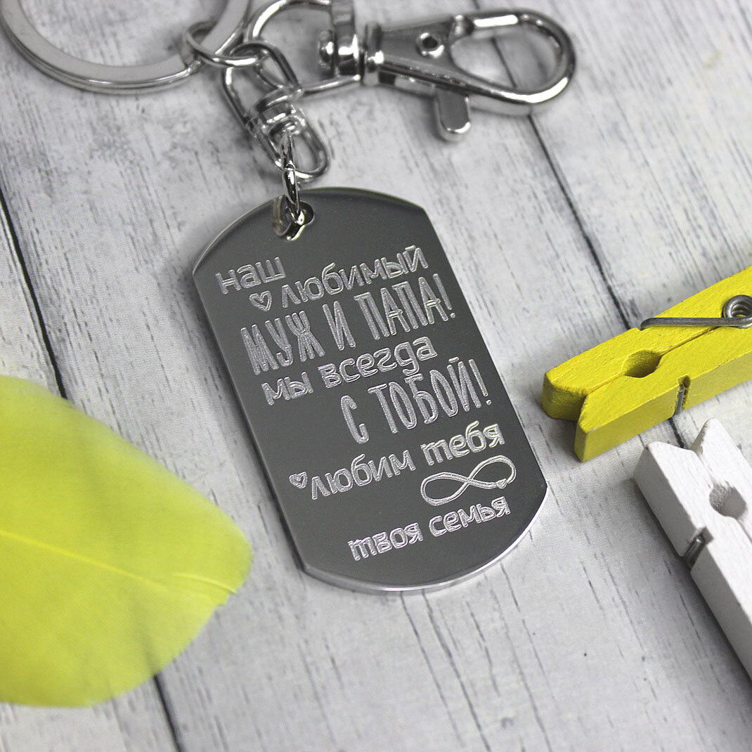 Классический брелок жетон с гравировкой о самом важном расскажет о Ваших чувствах лучше всяких слов!